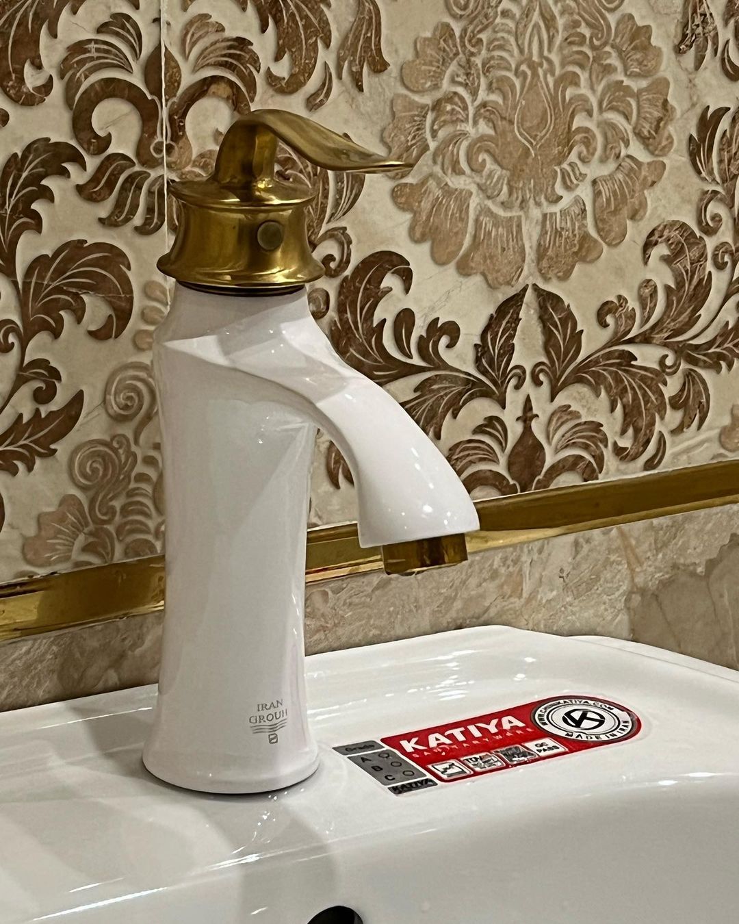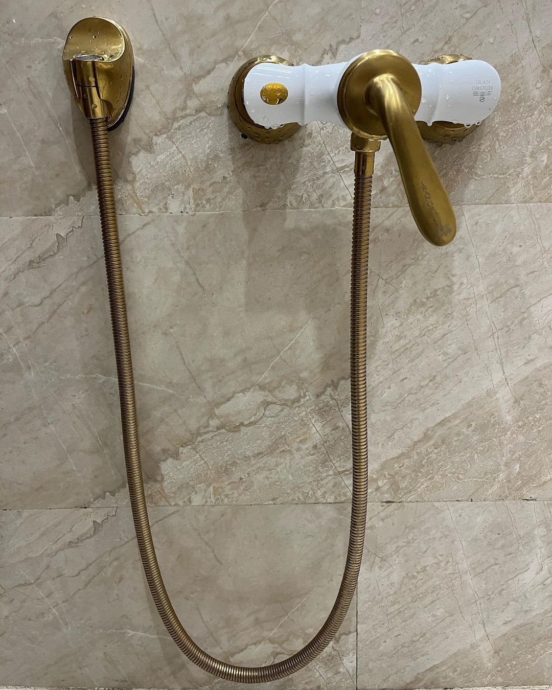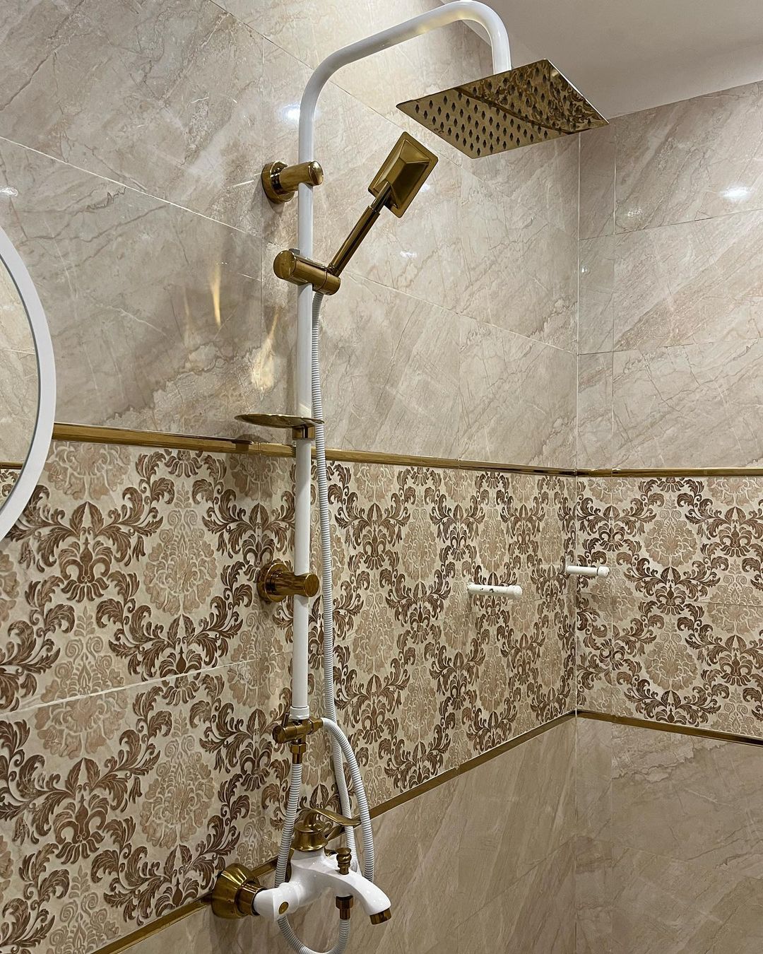 ست شیرالات مدل بامبو رنگ سفید طلا همراه علم دوش یونیورست سفید طلا