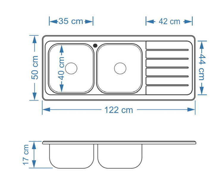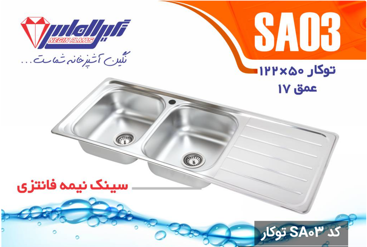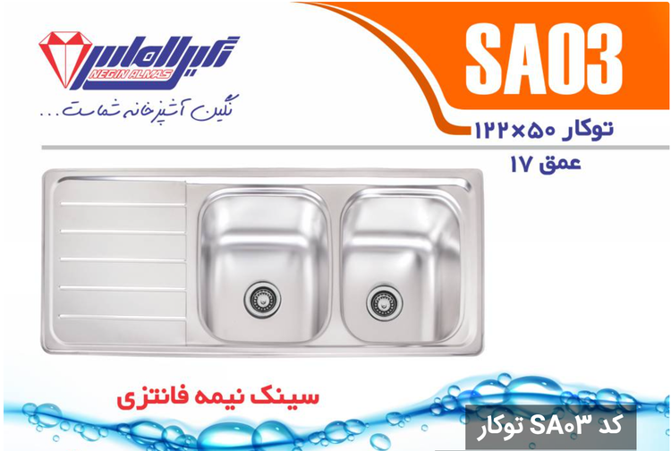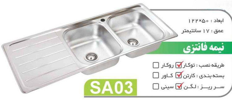 سینک نیمه فانتزی توکار کد SA03 سایز 50×122 عمــق 17