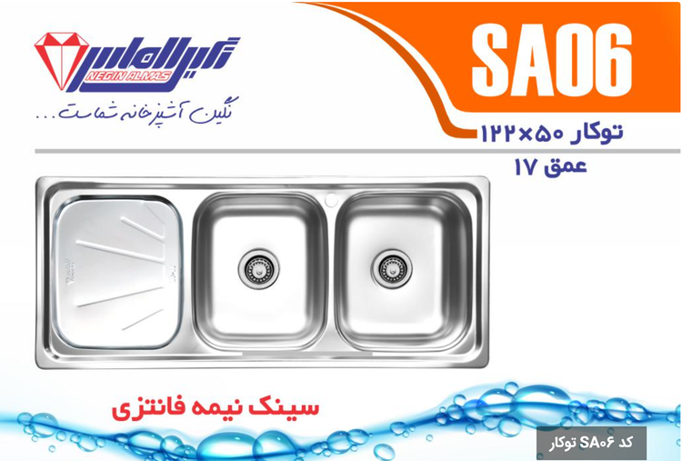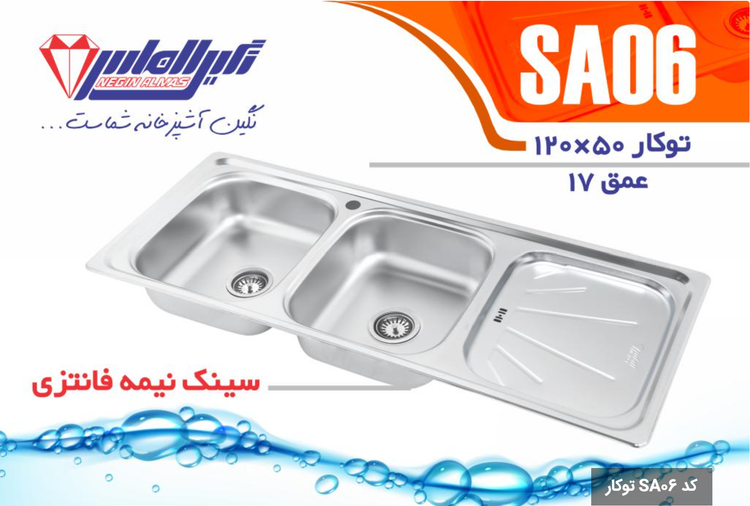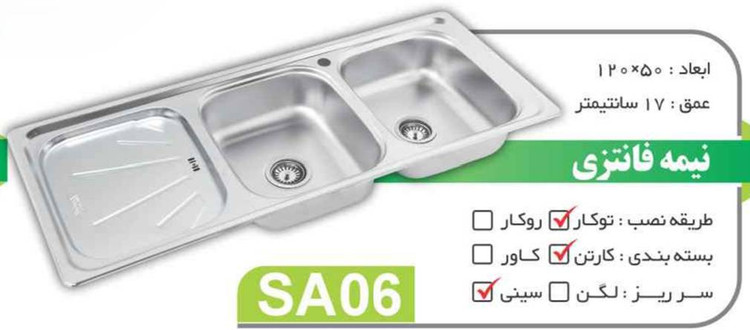 سینک نیمه فانتزی توکار کد SA06 سایز 50×120 عمــق 17