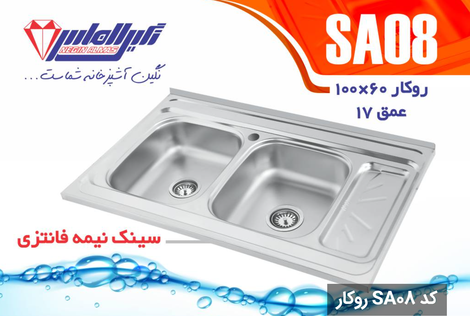 سینک نیمه فانتزی روکار کد SA08 سایز 60×100 عمــق 17