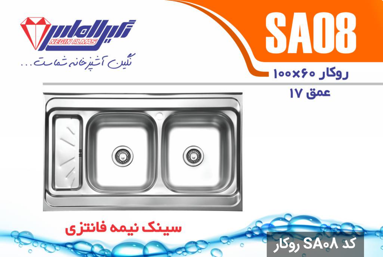 سینک نیمه فانتزی روکار کد SA08 سایز 60×100 عمــق 17