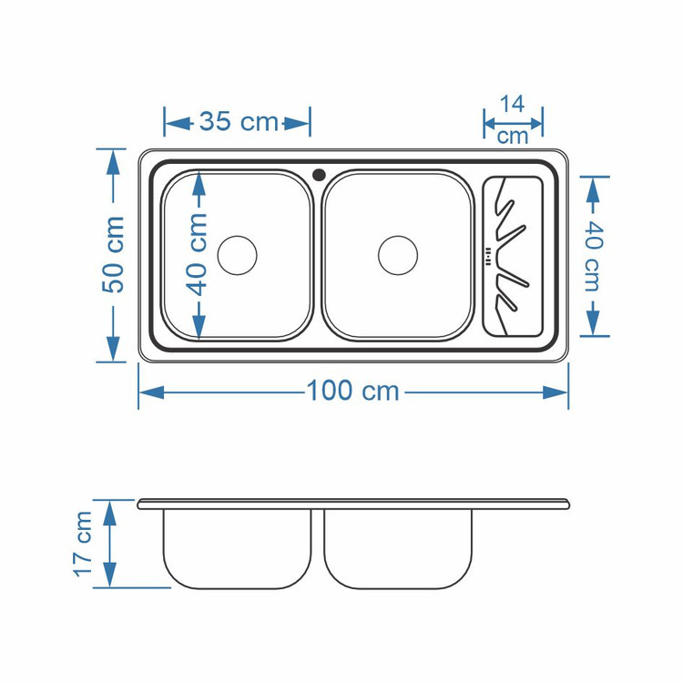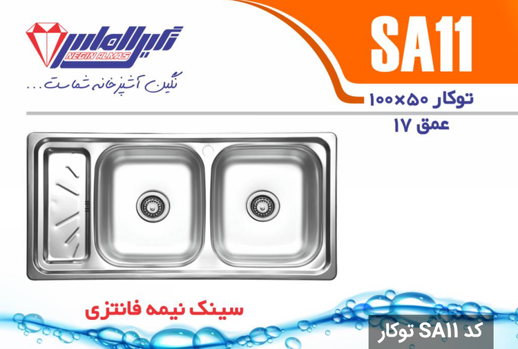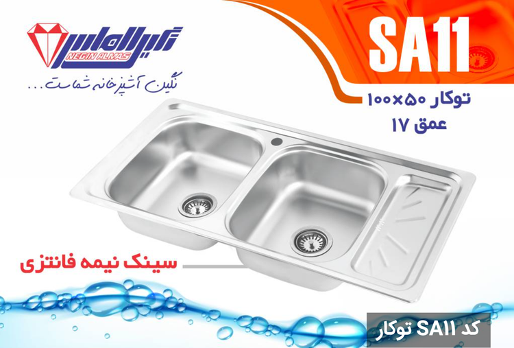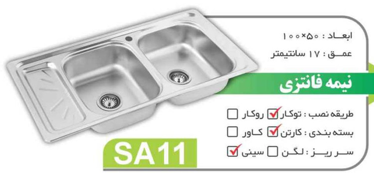 سینک نیمه فانتزی توکار کد SA11 سایز 50×100 عمق 17