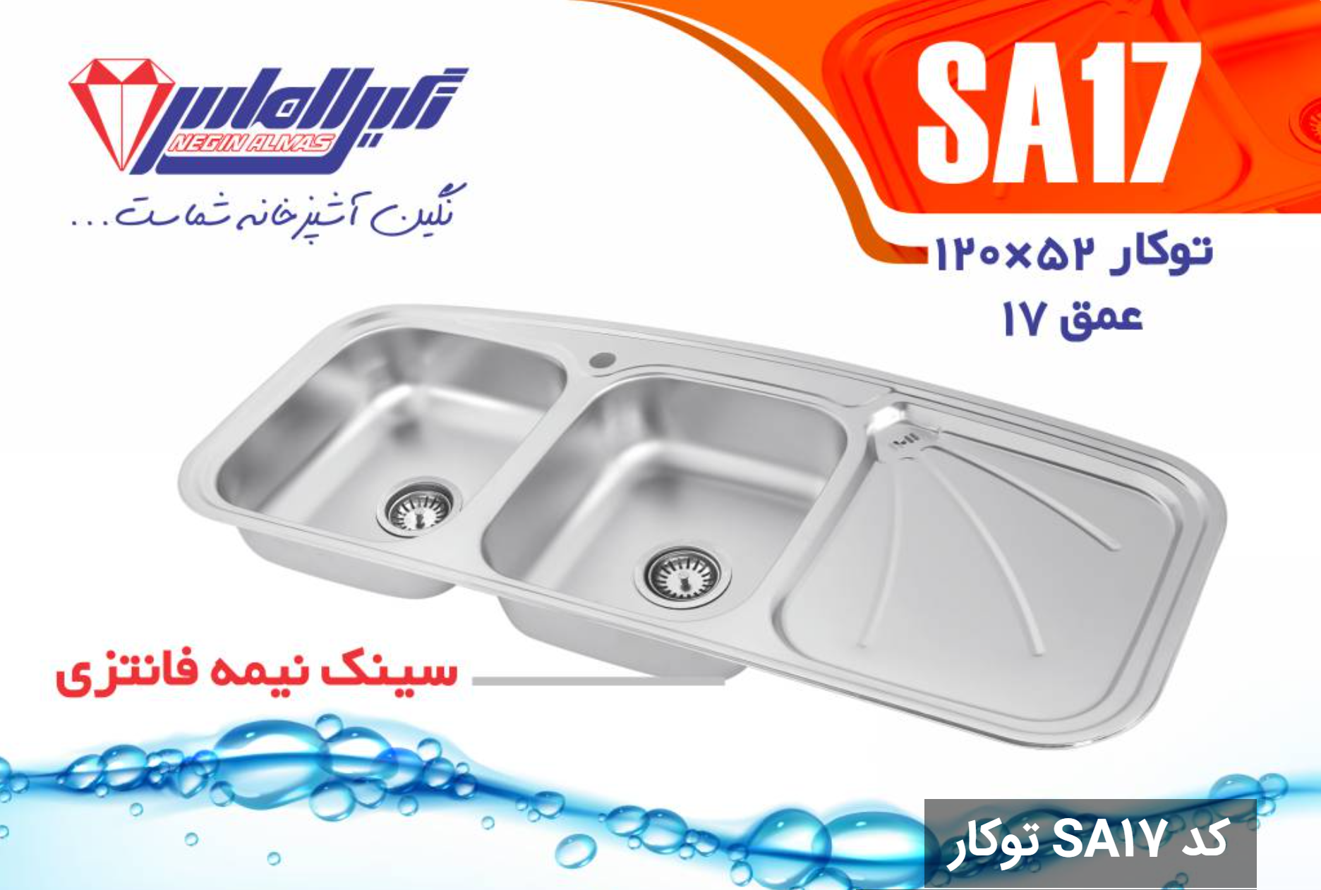 سینک نیمه فانتزی توکار کد SA17 سایز 52×121 عمق 17