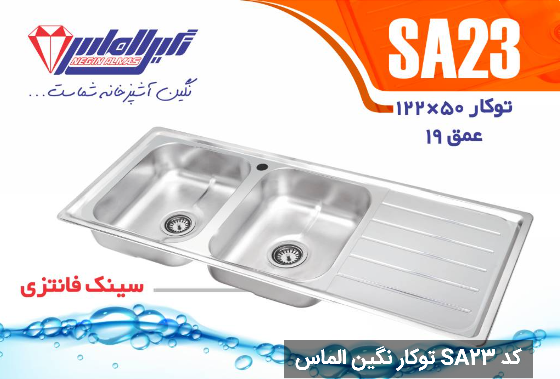 سینک فانتزی توکار کد SA23 سایز 50×122 عمق 19