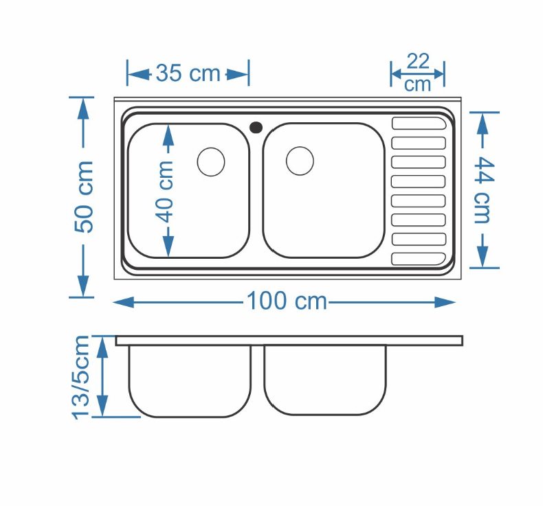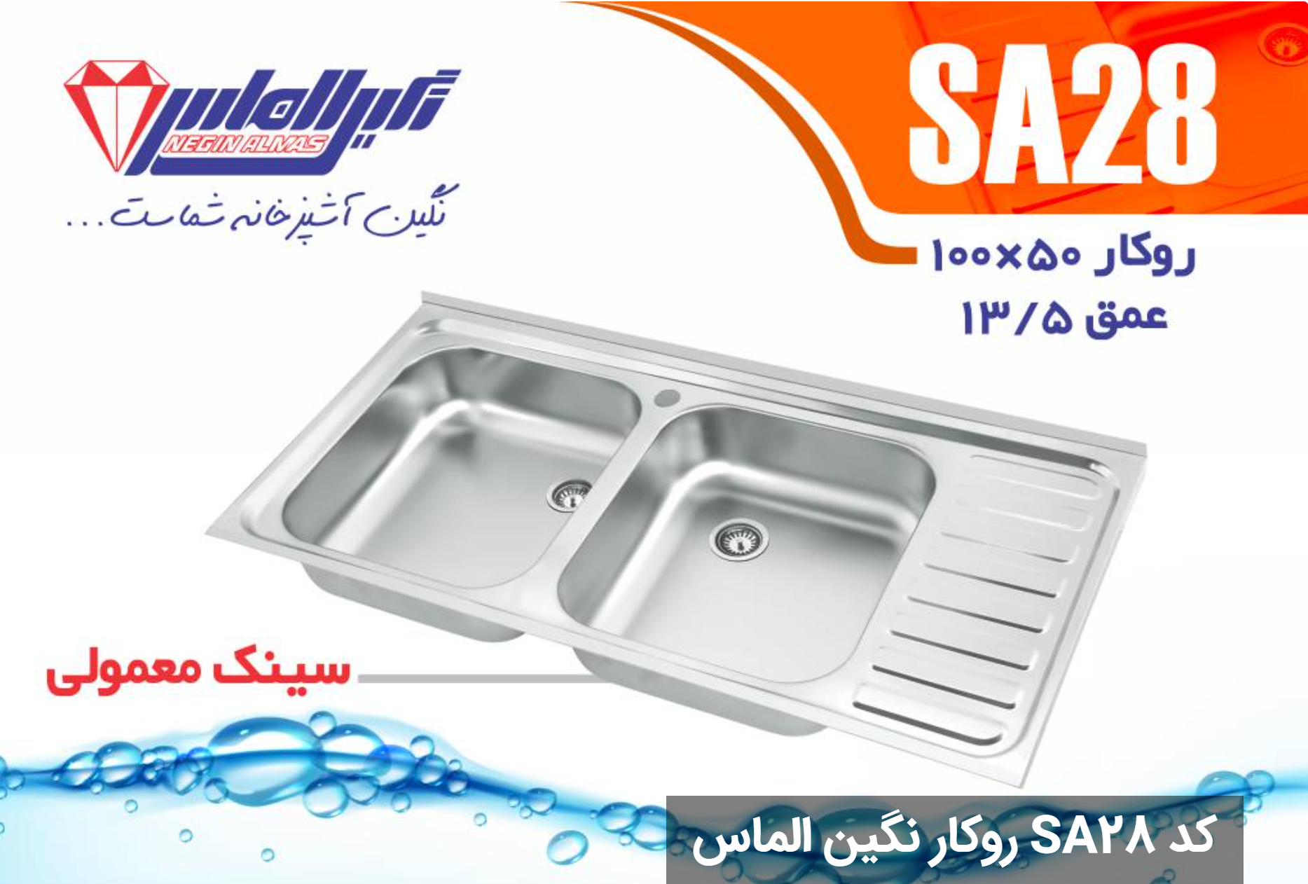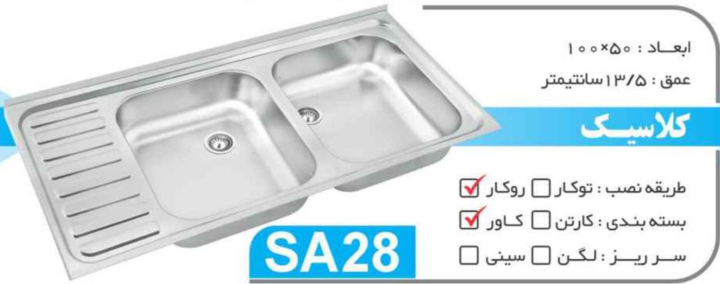 سینک معمولی روکار کد SA28 سایز 50×100 عمق 13/5