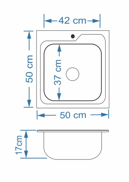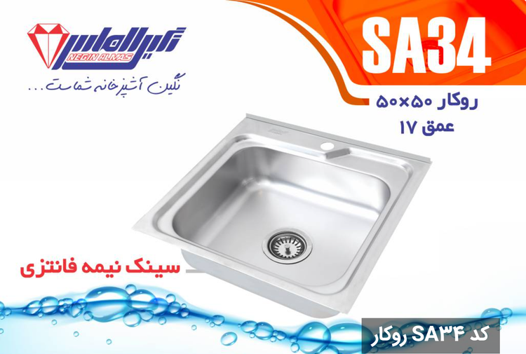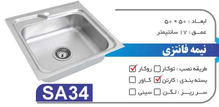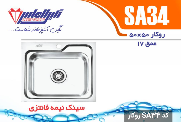 سینک نیمه فانتزی روکار SA34 سایز 50×50 عمــق 17