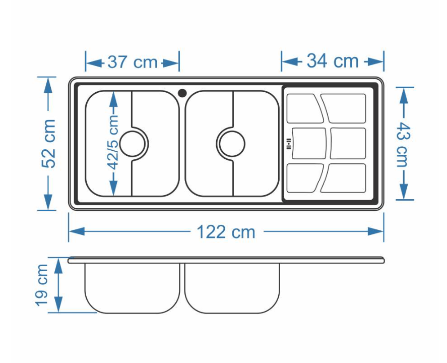 سینک نیمه فانتزی توکار SA38 سایز 50×122 عمق 17