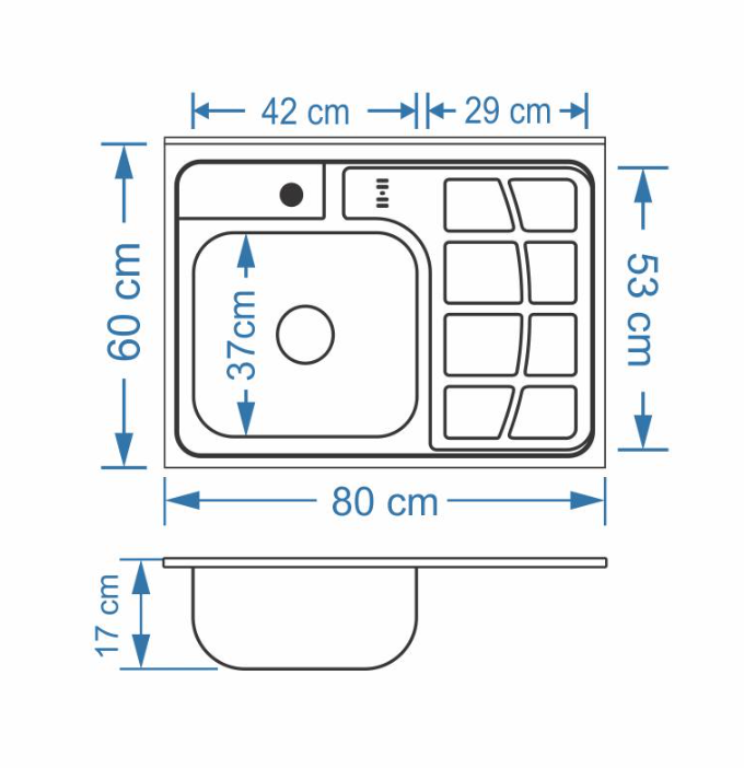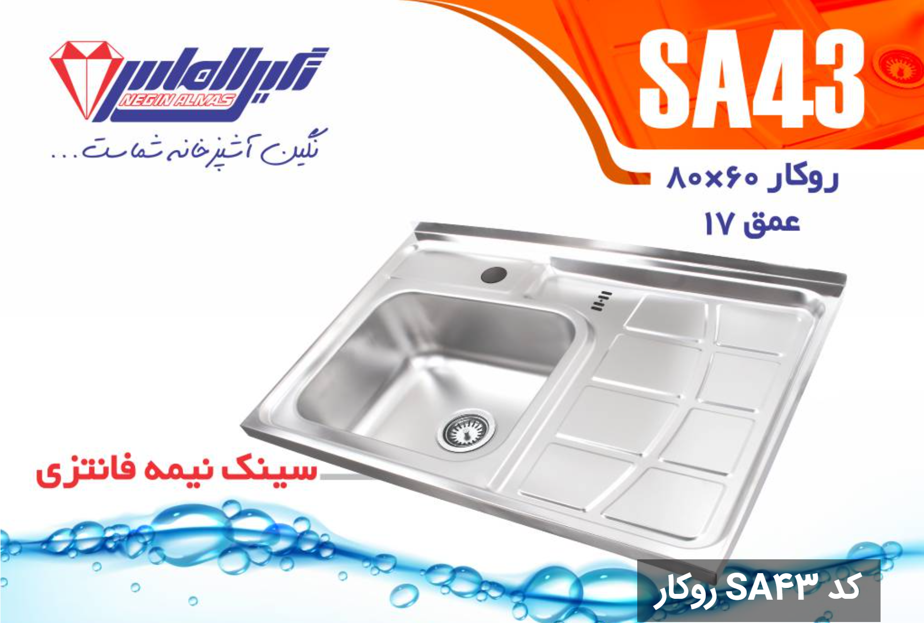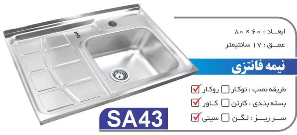 سینک نیمه فانتزی توکار SA42 سایز 50×82/5 عمق 19
