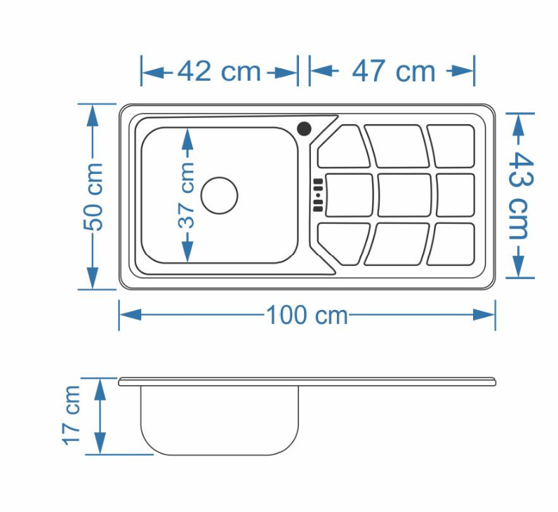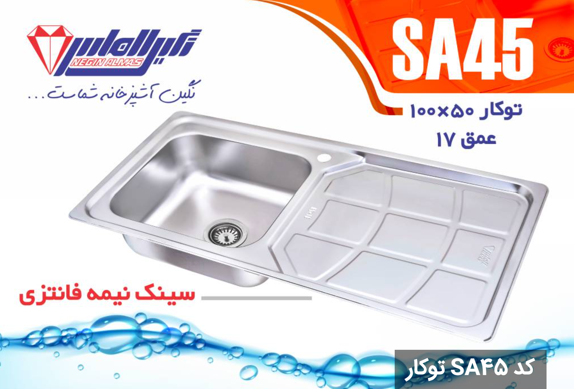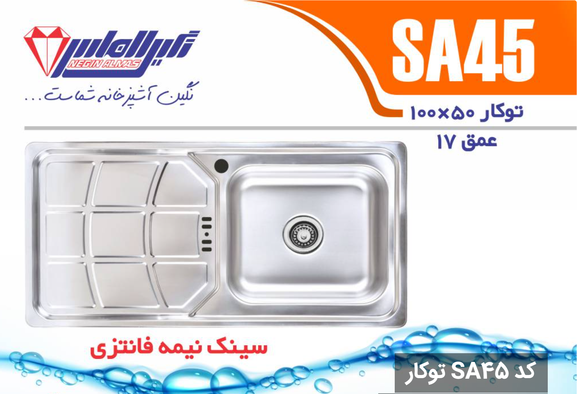 سینک نیمه فانتزی توکار SA45 سایز 50×100 عمق 17