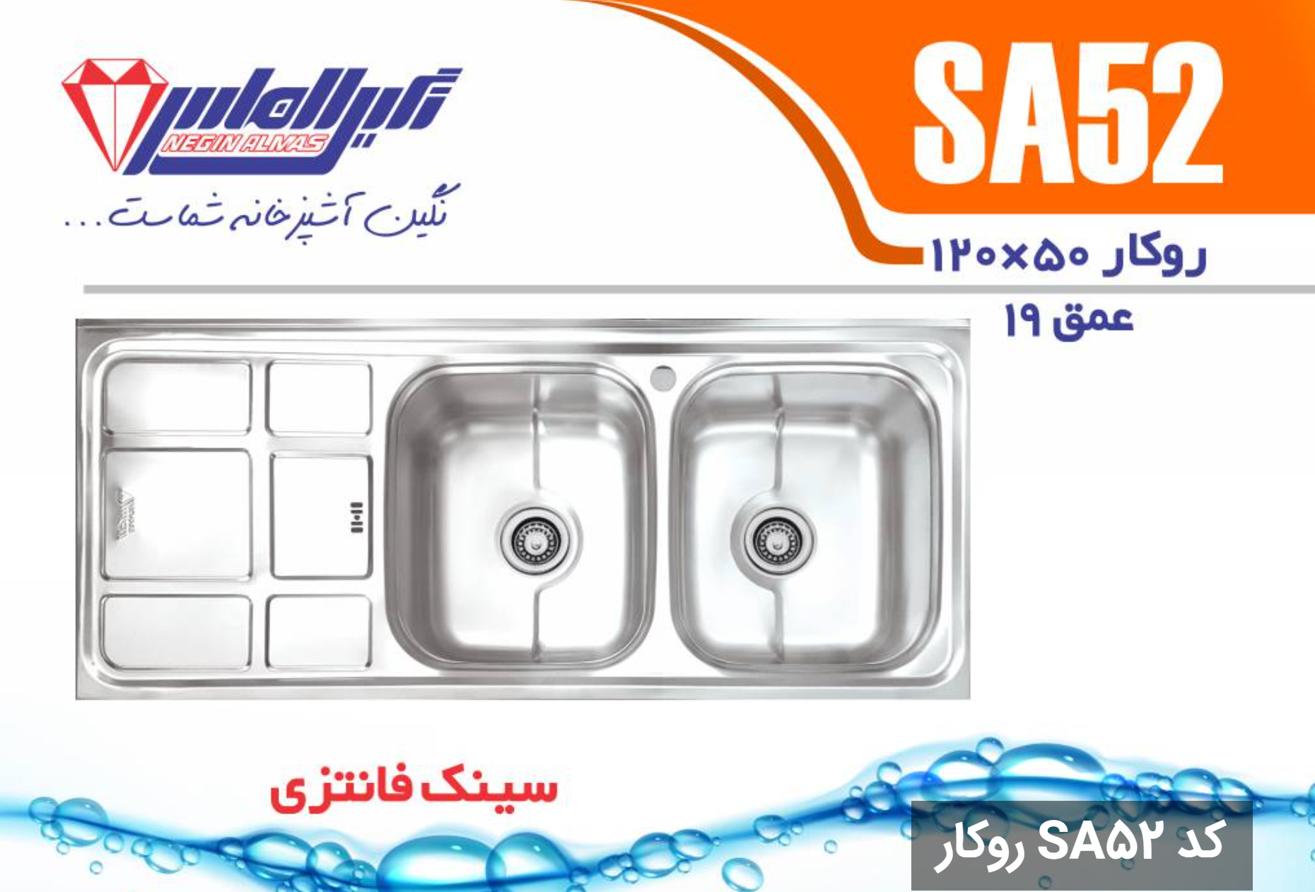 سینک فانتزی روکارSA52 سایز 50×120 عمق 19