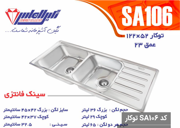 سینک فانتزی توکار SA106 سایز 52×122 عمق 23