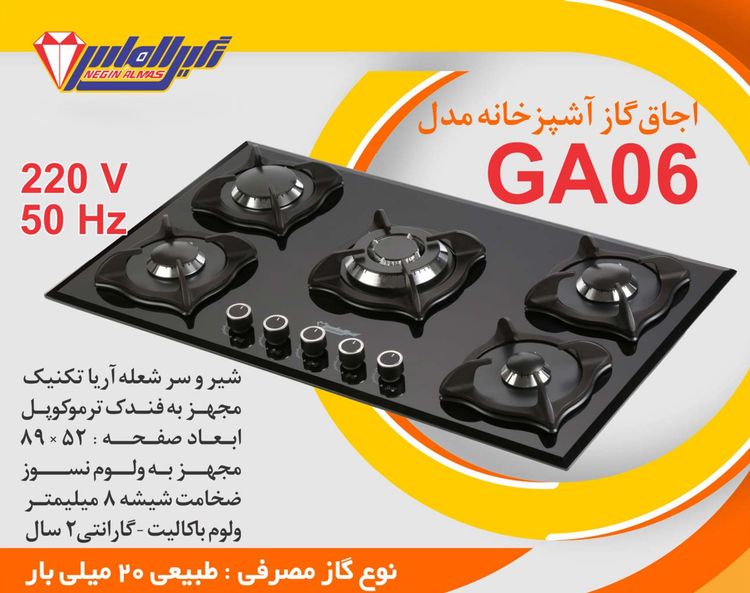 | شبکه رویه چدنی با لعاب سه لایه و پنج شعله مجهز به میکرو سوئیچ و ترموکوپل تاپ تایم مجهز به فندک اتومات دارای ولوم های نسوز فلزی باکالیت دارای سیم های نسوز و مگنت اسپانیایی شیشه های مقاوم و هشت میل بوبین ORKli اسپانیا |