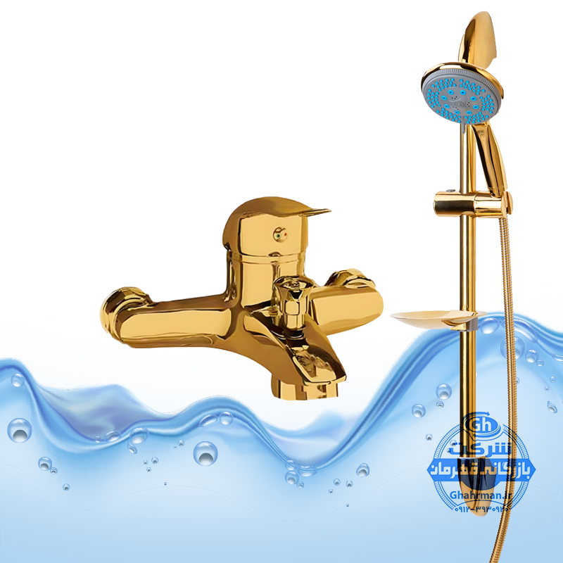 ست ۲ عددی شیر حمام و علم دوش یونیورست مدل یونیکا | طلایی براق | شیرآلات برند آیدا صنعت مدل دنیز