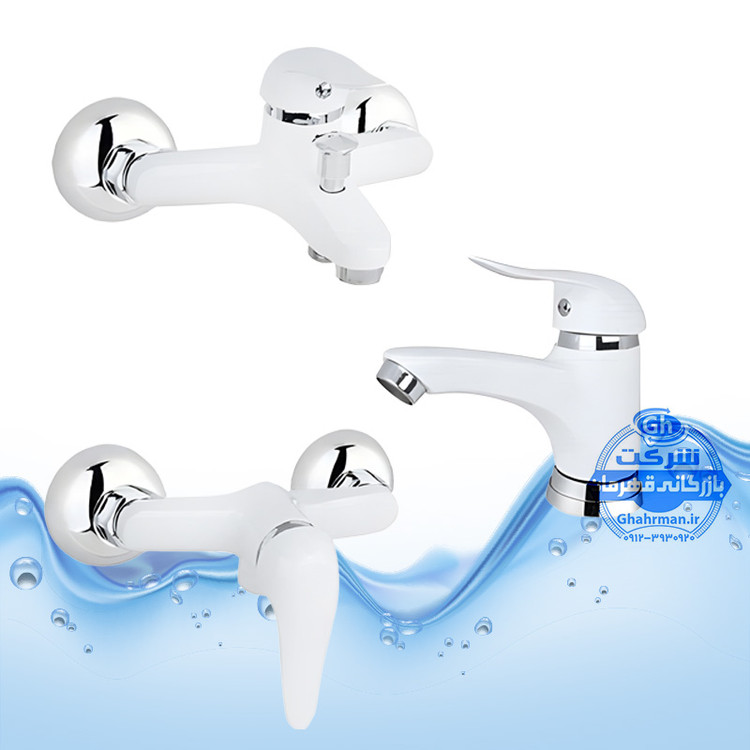 ست ۳ عددی شیرآلات برند آیدا صنعت مدل دنیز | شیر حمام + شیر توالت + شیر روشویی | سفید کروم براق