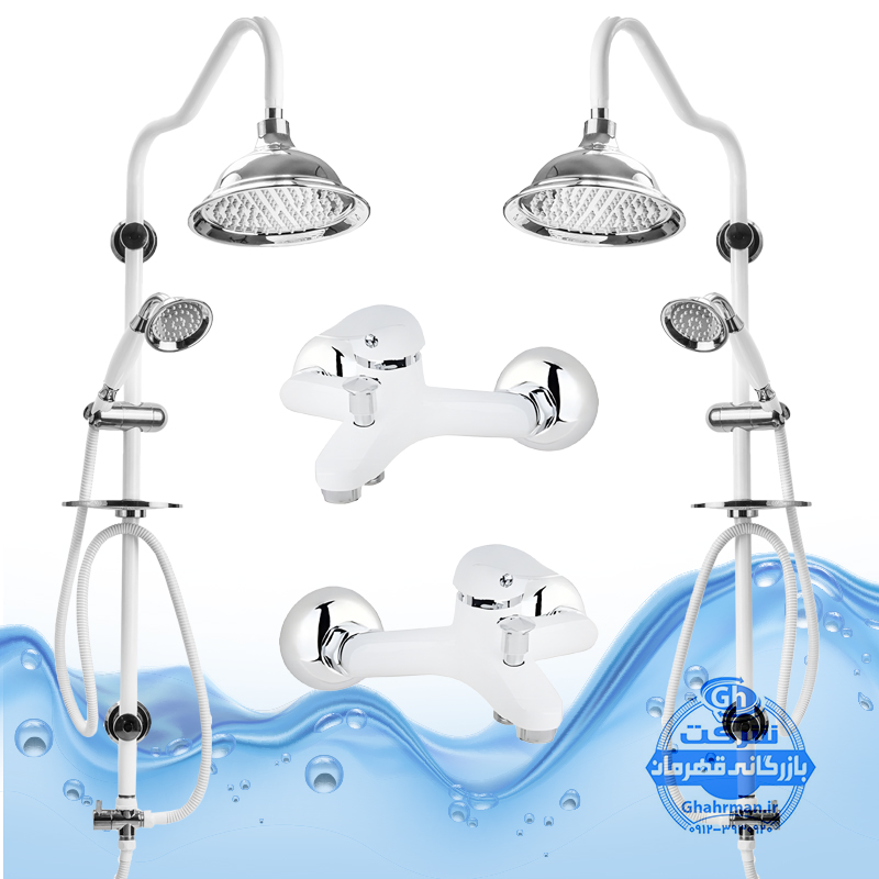 ست ۴ عددی دوش حمام با علم یونیورست شیپوری شیرآلات برند آیدا صنعت مدل دنیز | سفید کروم براق