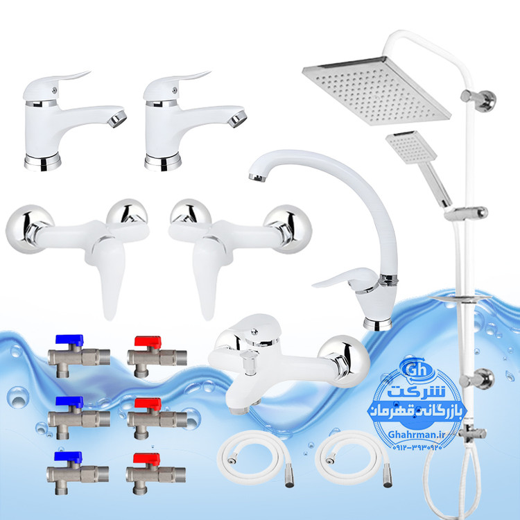 ست ۱۵ عددی شیرآلات برند آیدا صنعت مدل قهرمان اردکی | شیر ظرفشویی + دو عدد شیر روشویی + شیر حمام + شیر توالت + علم دوش یونیورست مدل رسوب‌گیر اتومات + دو عدد شلنگ توالت + دو عدد شلنگ استیل + چهار عدد شیر پیسوار | سفید کروم براق