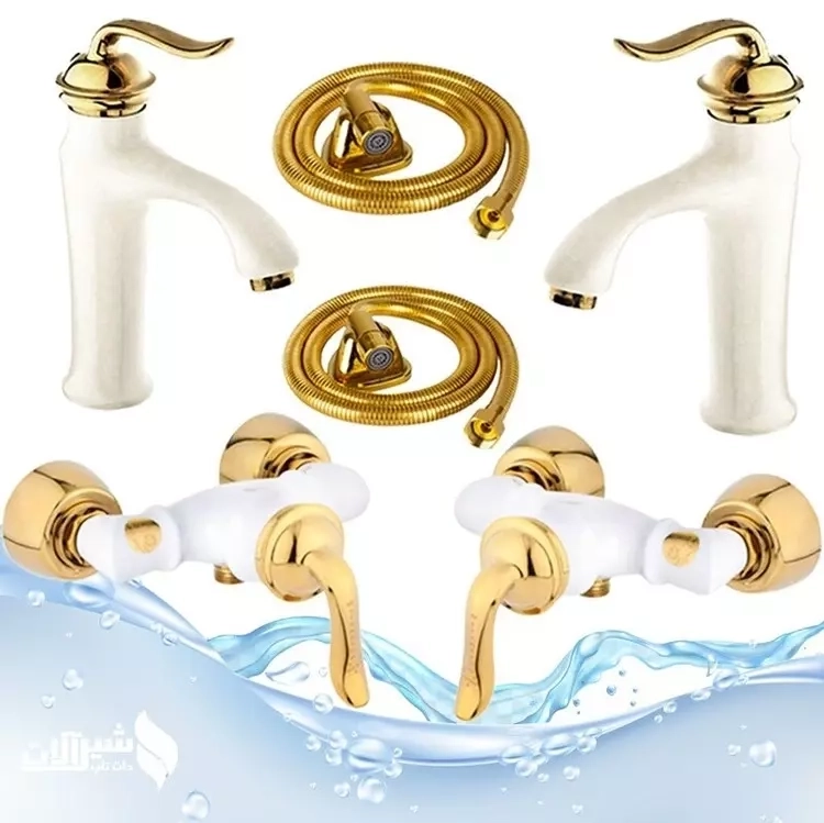 ست 6عدد شیر آلات بامبو سفید طلایی