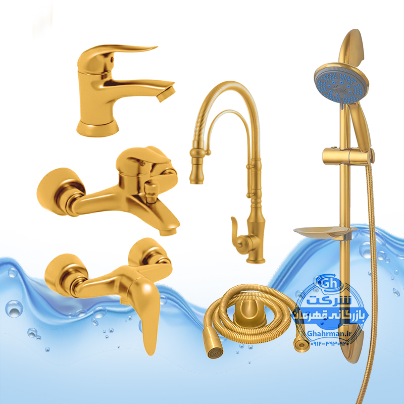 ست ۶ عددی شیرآلات برند آیدا صنعت مدل دنیز | طلایی مات | ظرفشویی فنری بامبو + علم دوش یونیکا
