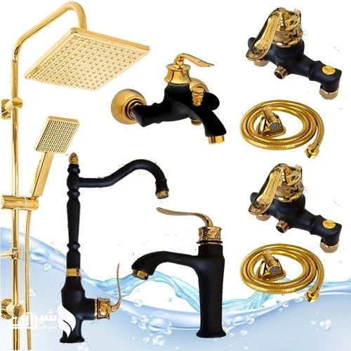 مجموعه 8عددی بامبو مشکی طلایی به همراه علم دوش رسوبگیرطلا