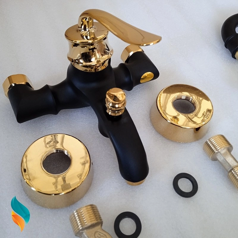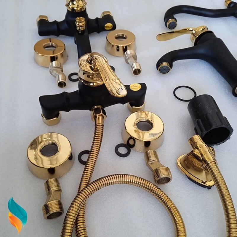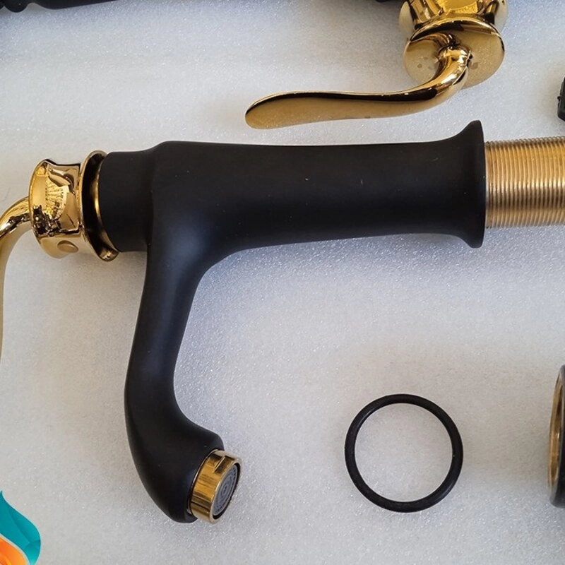 ست 7عددی شیرآلات اهرمی مشکی طلایی مدل بامبو یونیکا