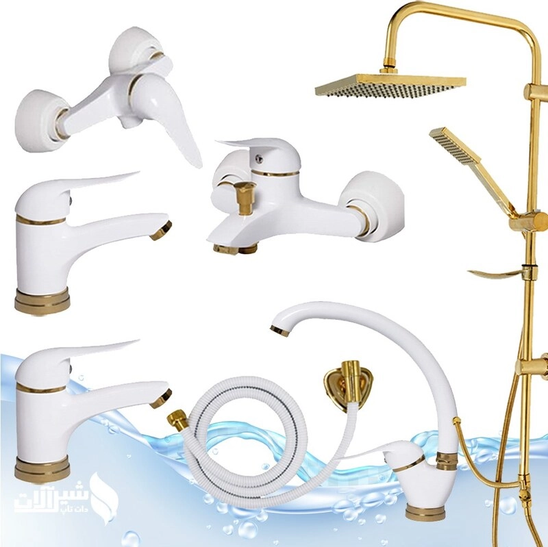 مجموعه 7عددی شیرآلات آیدا سفیدطلایی با علم دوش یونیورست