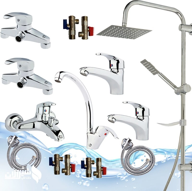 ست 15 عددی شیرآلات مدل ماهان با علم دوش استیل و پیسوار