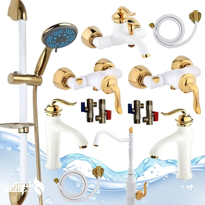 ست کامل13عددی بامبو سفیدطلایی با علم دوش یونیکا با پیسوار