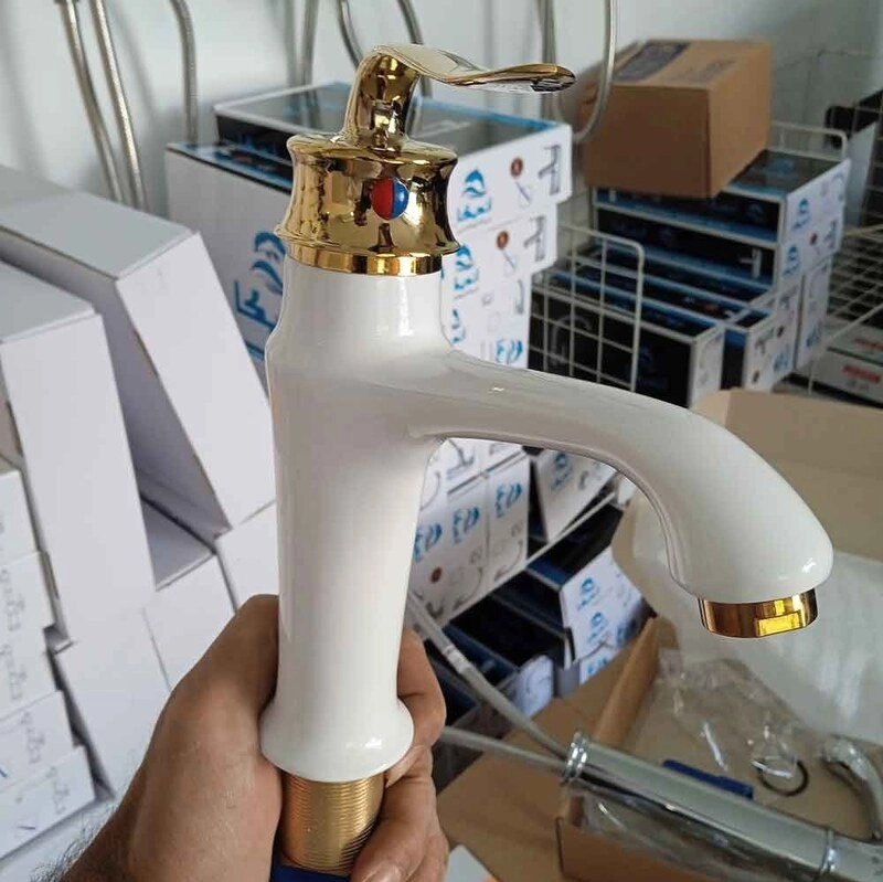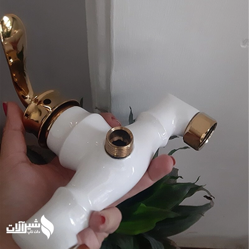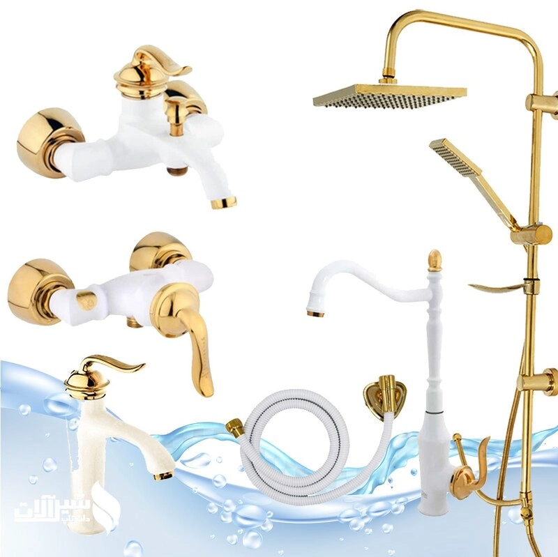 ست 6 عددی شیرآلات اهرمی آیدا بامبوسفید طلایی همراه با علم دوش موج طلایی