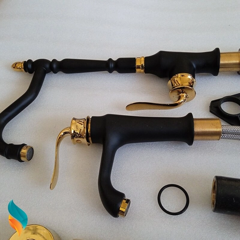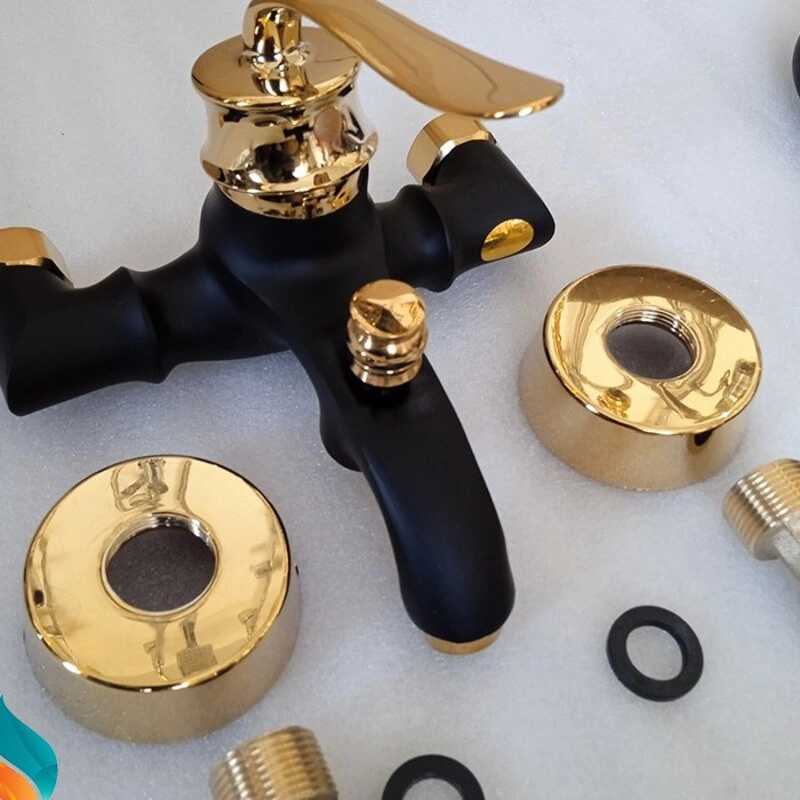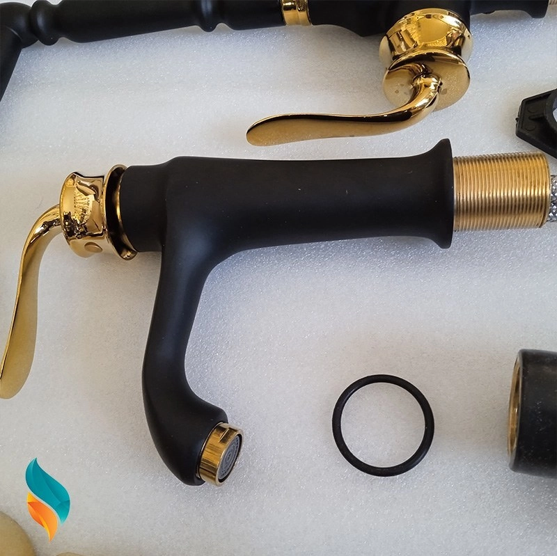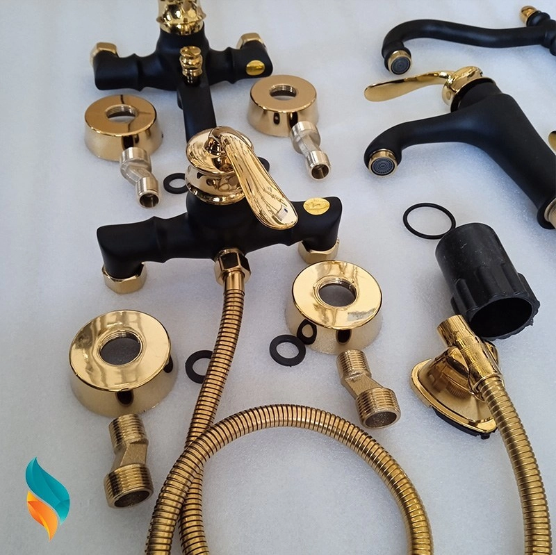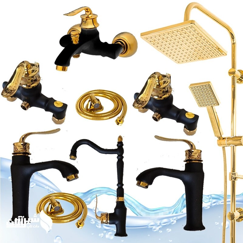 ست9عددی شیرآلات اهرمی بامبو مشکی طلایی رسوب گیر