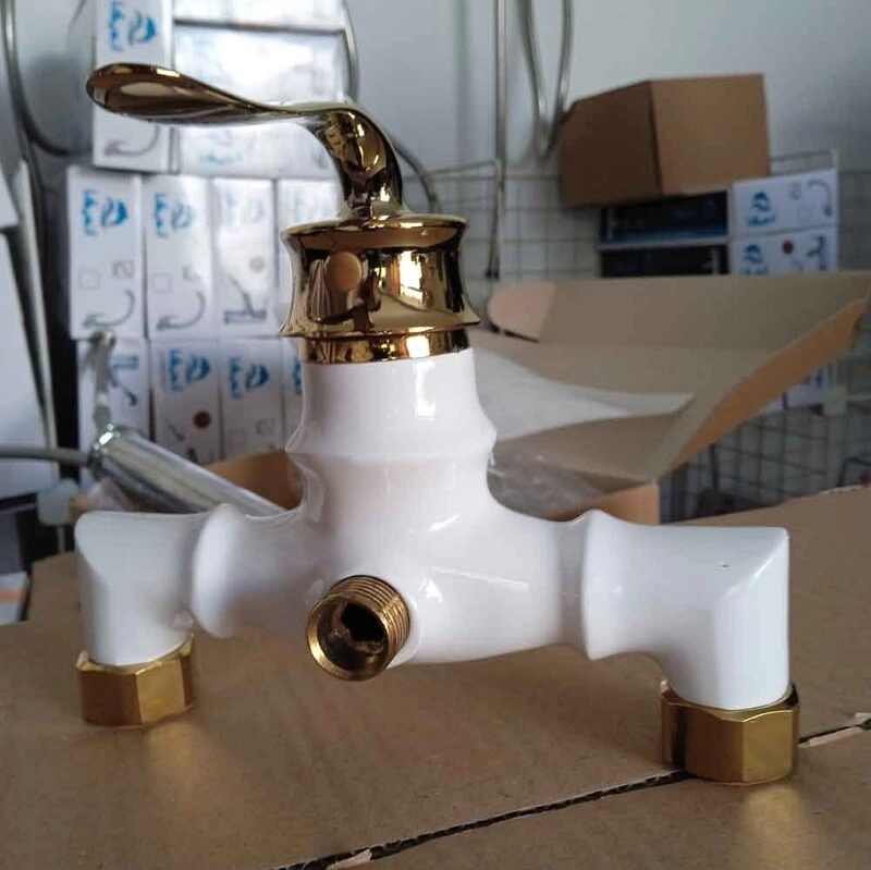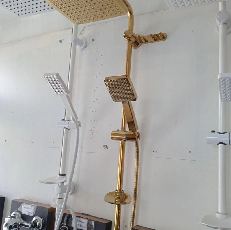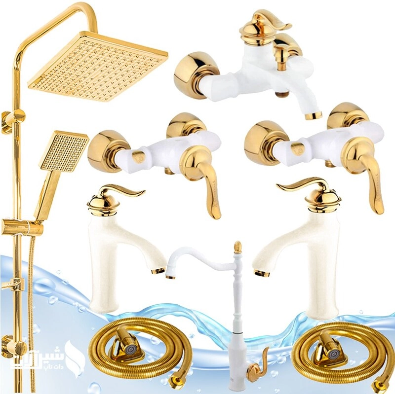 ست9عددی شیرآلات اهرمی بامبو سفیدطلایی رسوبگیرطلایی